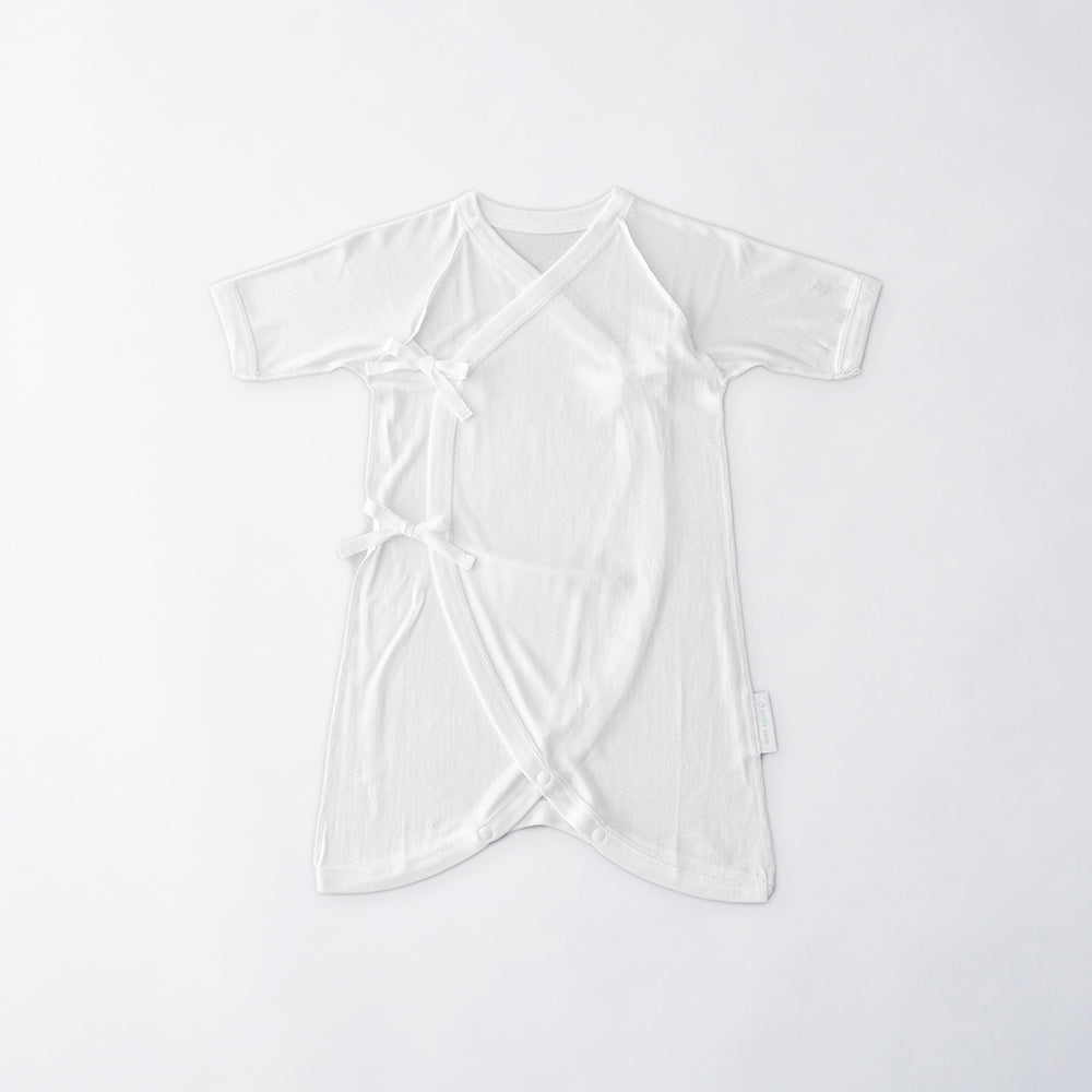 こちらは、足をバタバタさせてもはだけにくいようにボタンが付いたコンビ肌着です。短肌着の上に着せてあげてください。